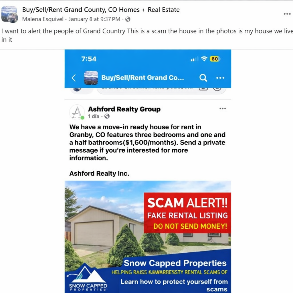 In one recent case, a home that is actively occupied by its owners was falsely advertised for rent without authorization. The listing appeared legitimate but was later confirmed to be a scam. Snow Capped Properties contacted the homeowner directly and received permission to share this experience to help educate the public and prevent future scams.